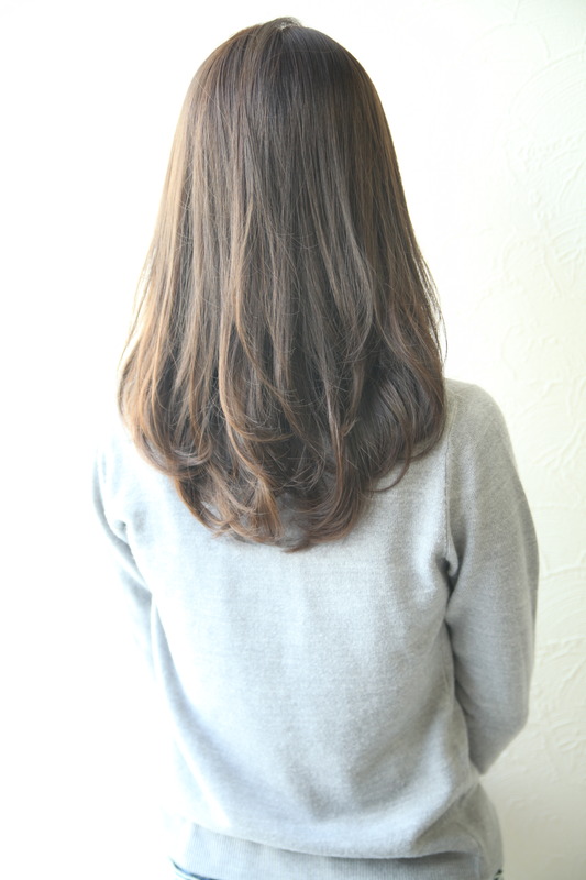 女性らしさを引き立てる柔らかい質感と立体感のでるスタイル。【ノンダメージ】プラチナアクアカラーで上質なニュアンスに。。